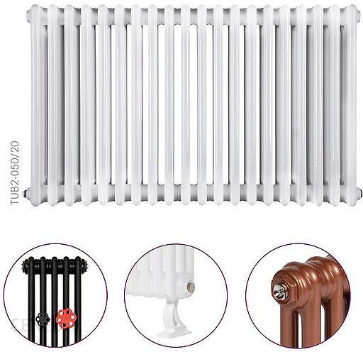 Grzejnik pokojowy Tubus 2 stanowi pozorny powrót do przeszłości. Tubus 2 posiada dwa rzędy kolektorów. Jego ponadczasowy wygląd to dobra baza dla wielu wystrojów pomieszczeń. To połączenie tradycji i nowoczesności wykonania. Dlatego sprawdzi się w różnych aranżacjach. Jego uniwersalny wzór wykorzystywany